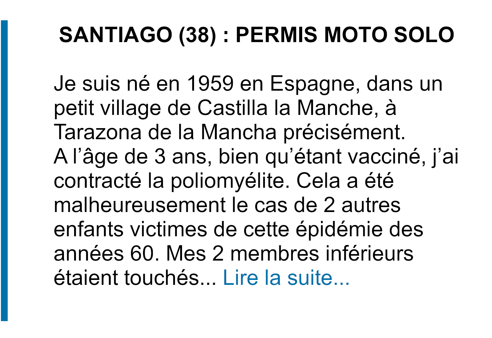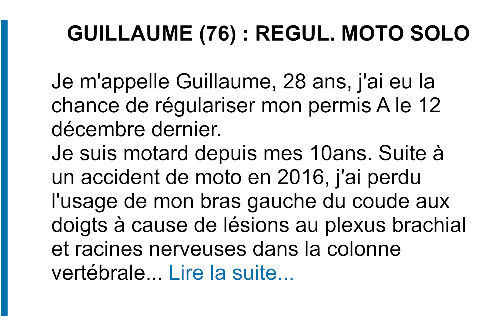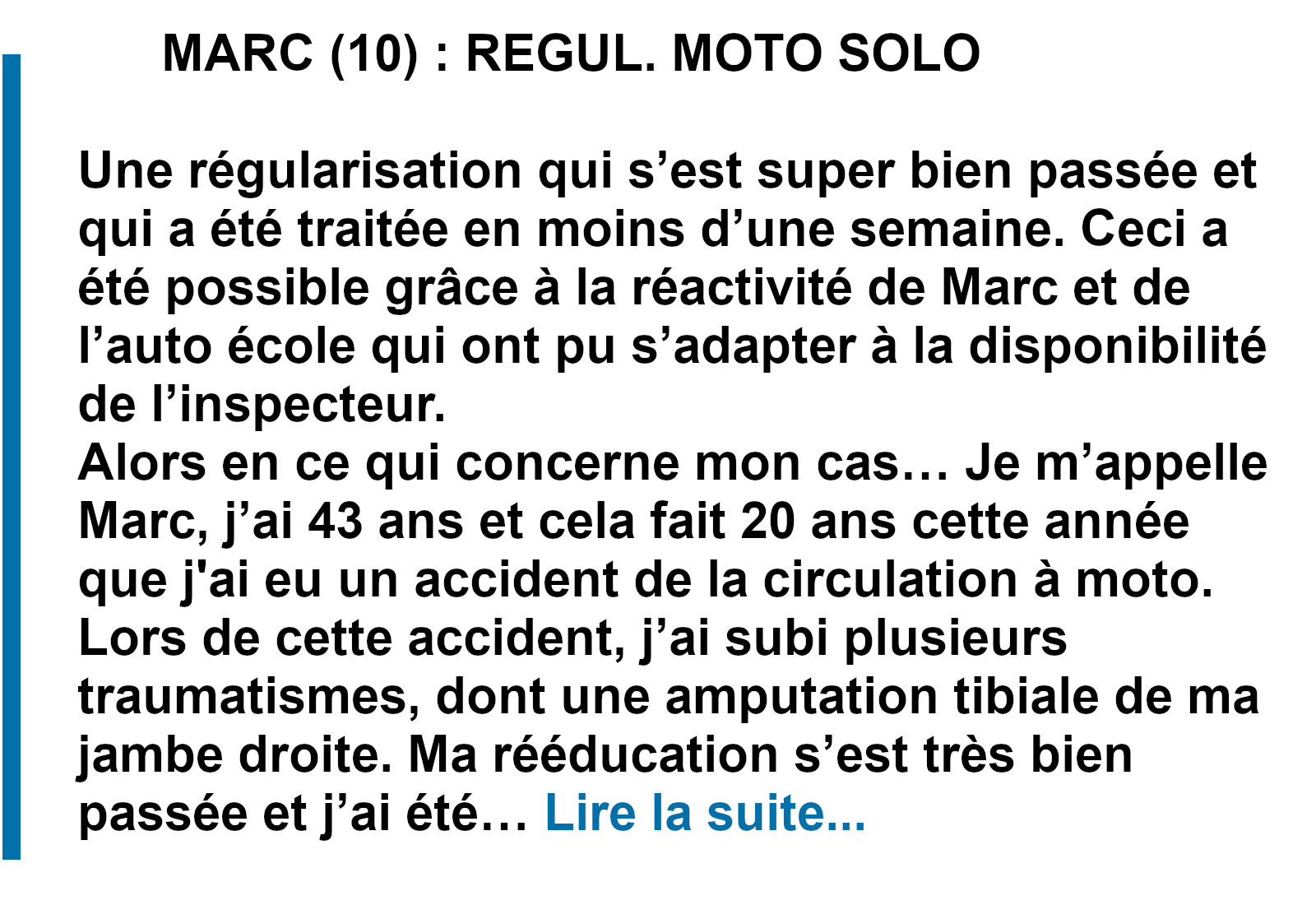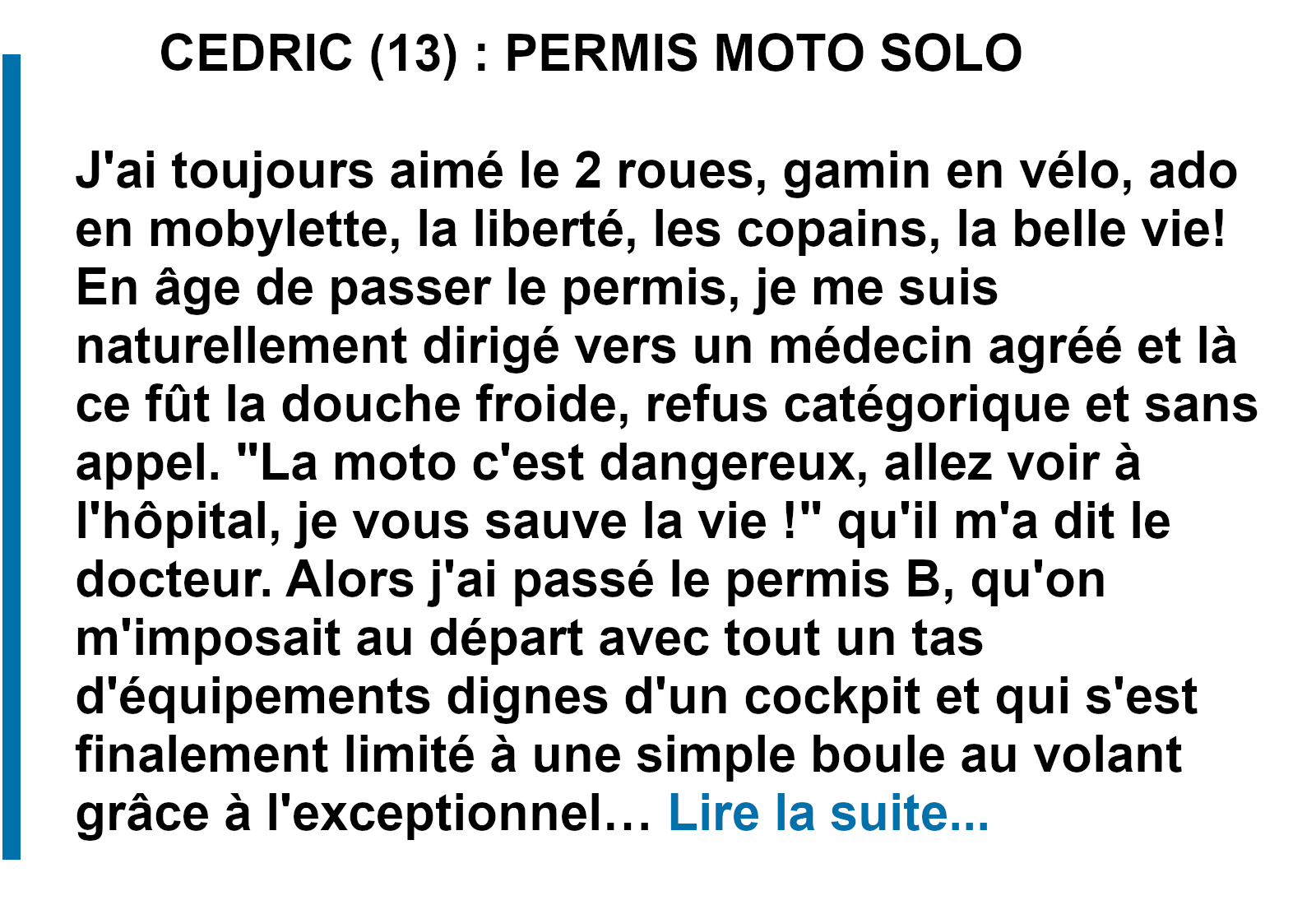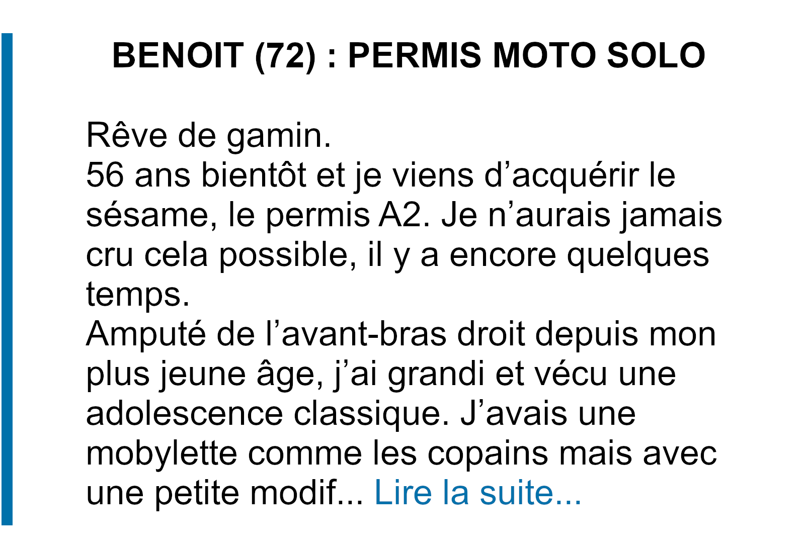 si double amputation tibiale, la moto devra être équipée avec les aménagements jambes droite et gauche (Code restriction permis : 44.03 & 10).