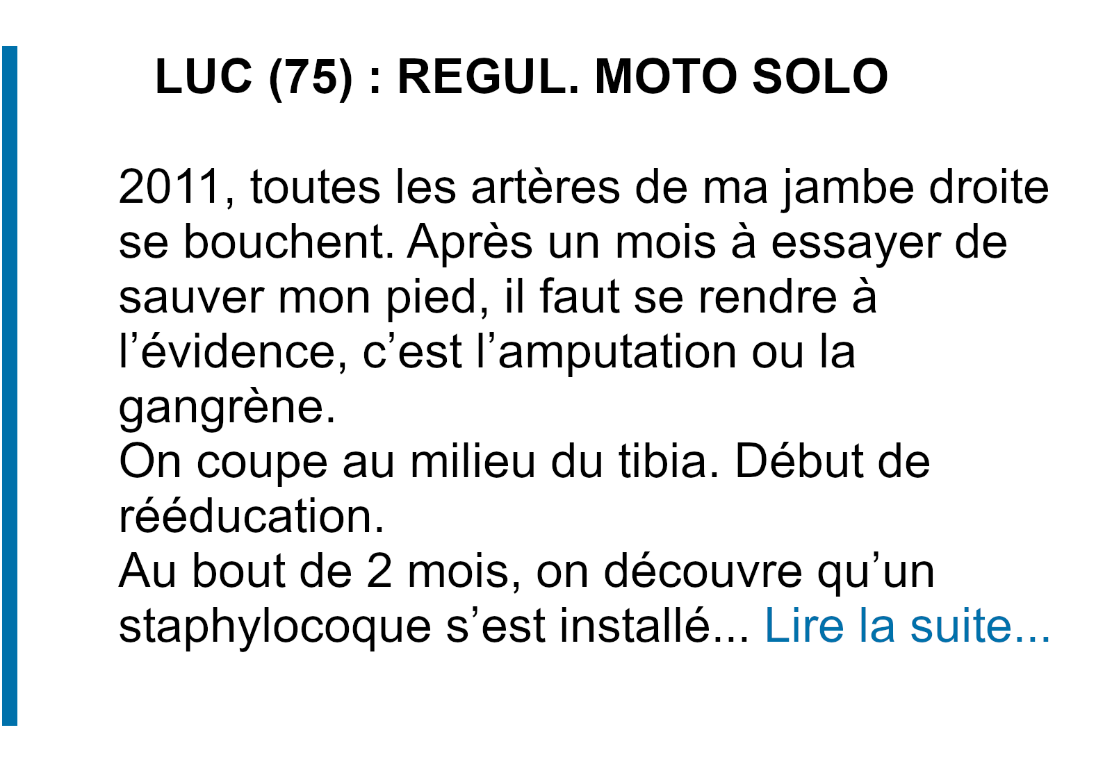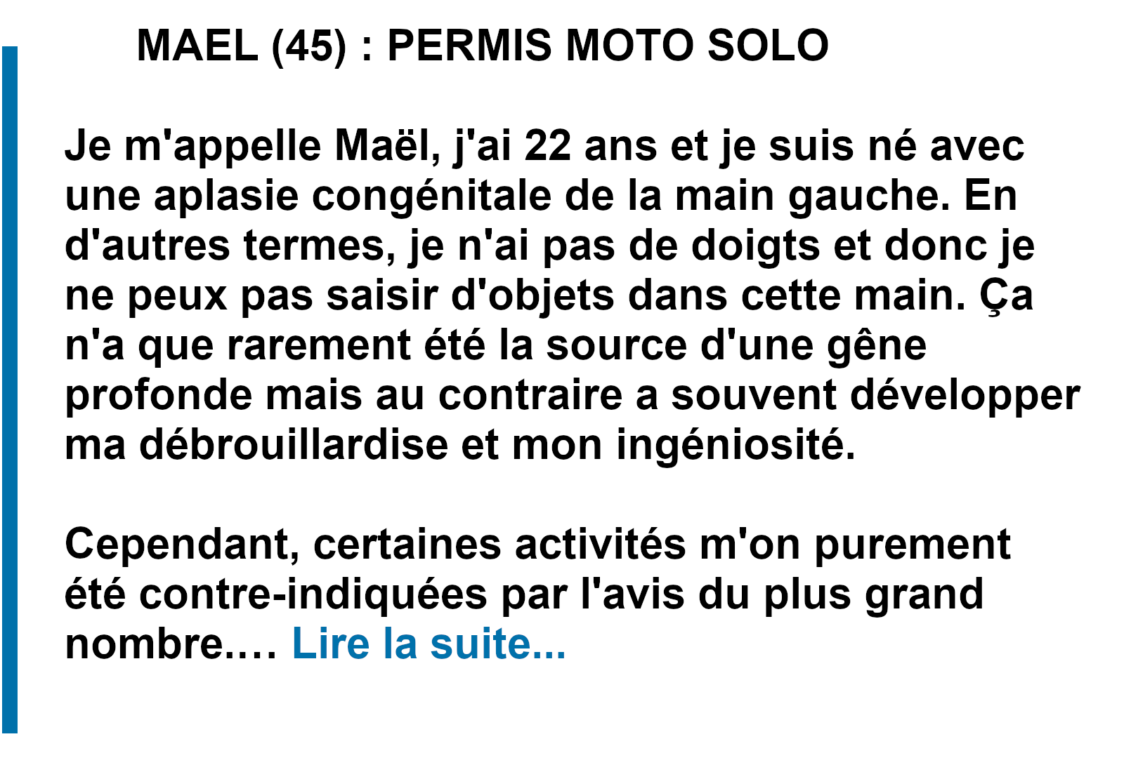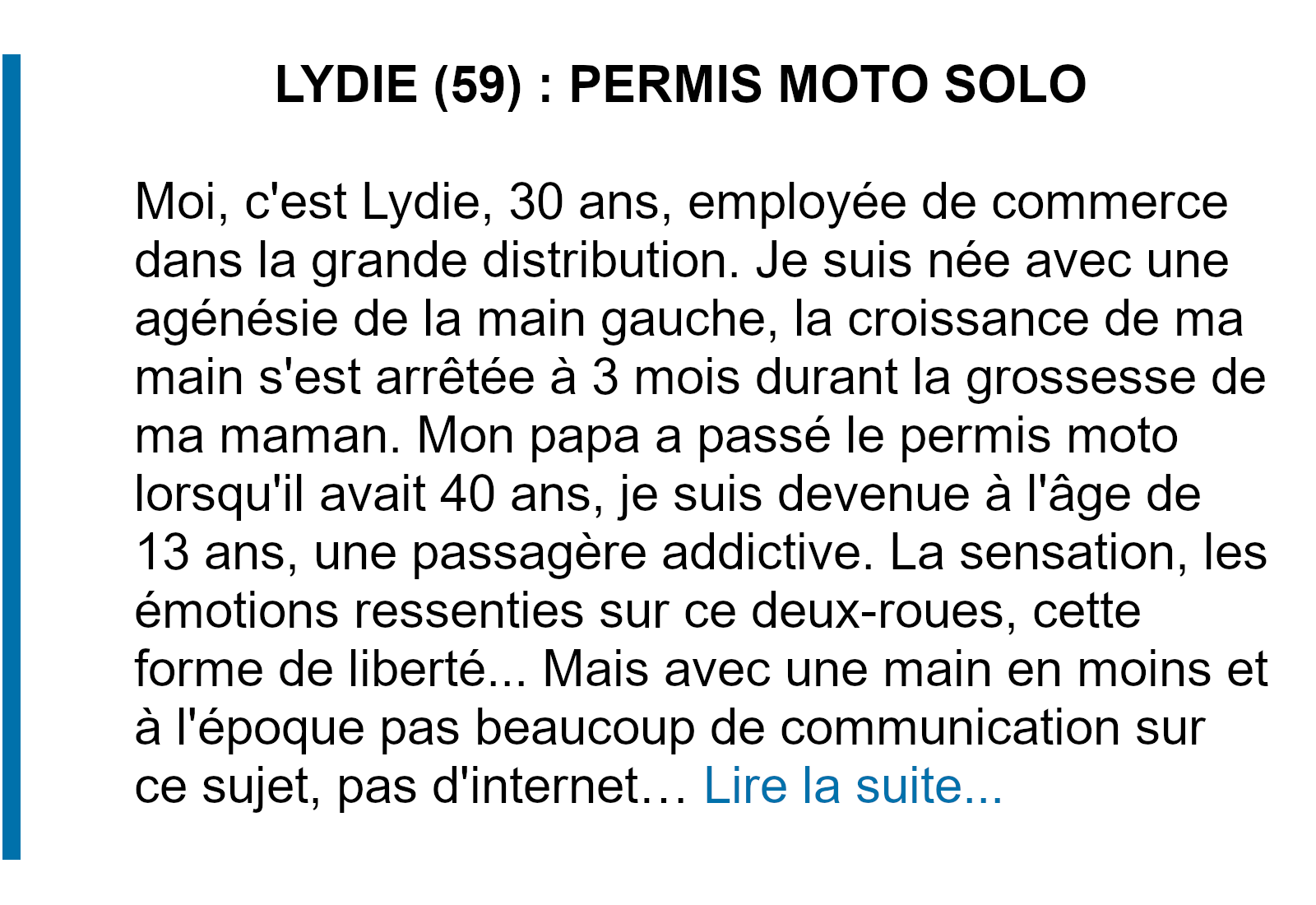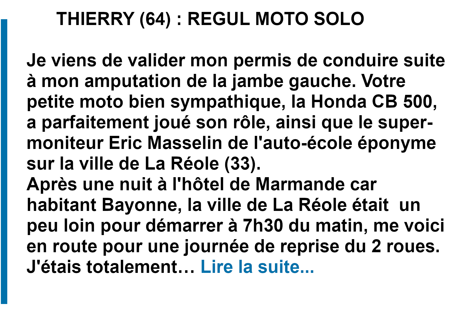 si double amputation tibiale, la moto devra être équipée avec les aménagements jambes droite et gauche (Code restriction permis : 44.03 & 10).