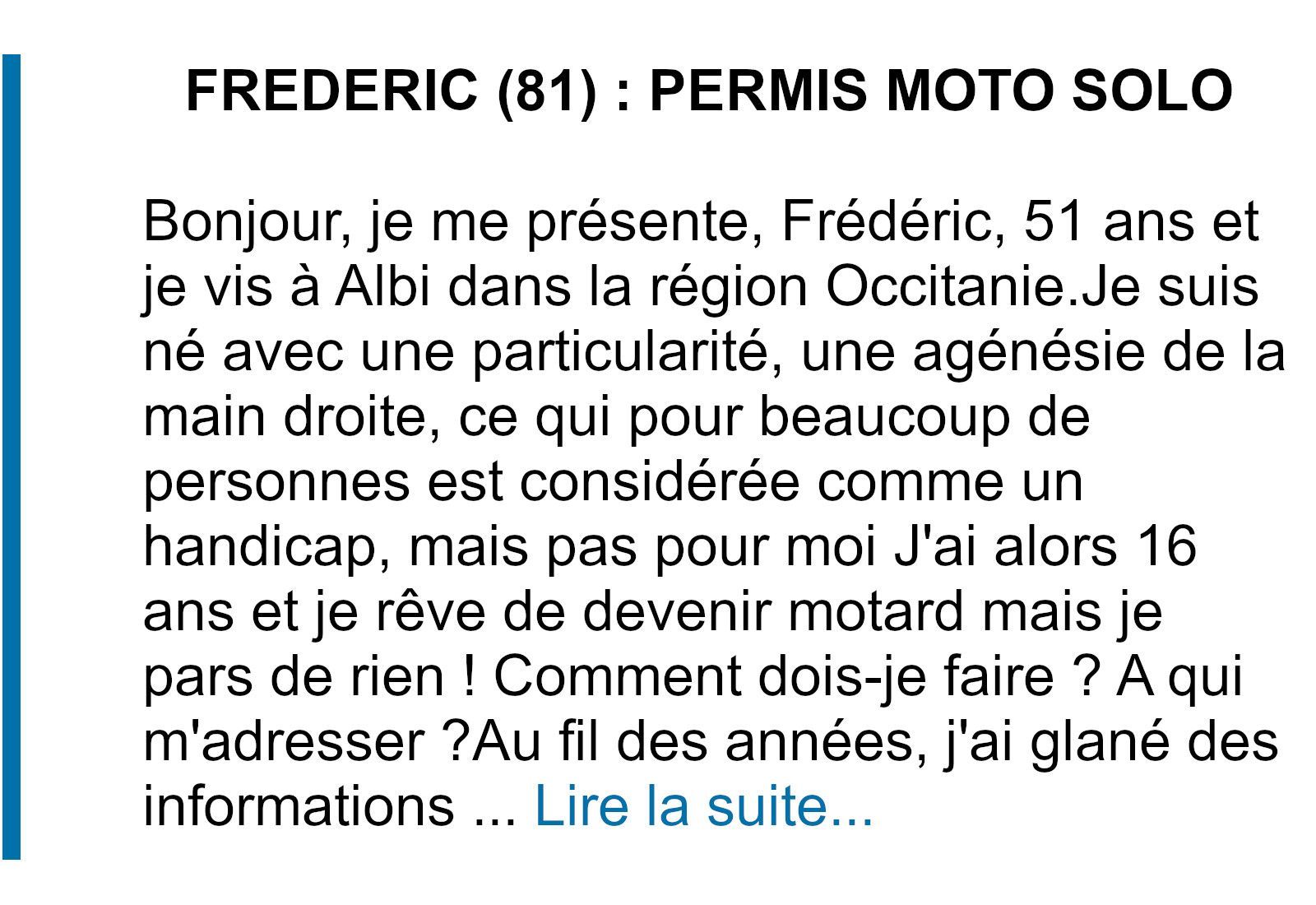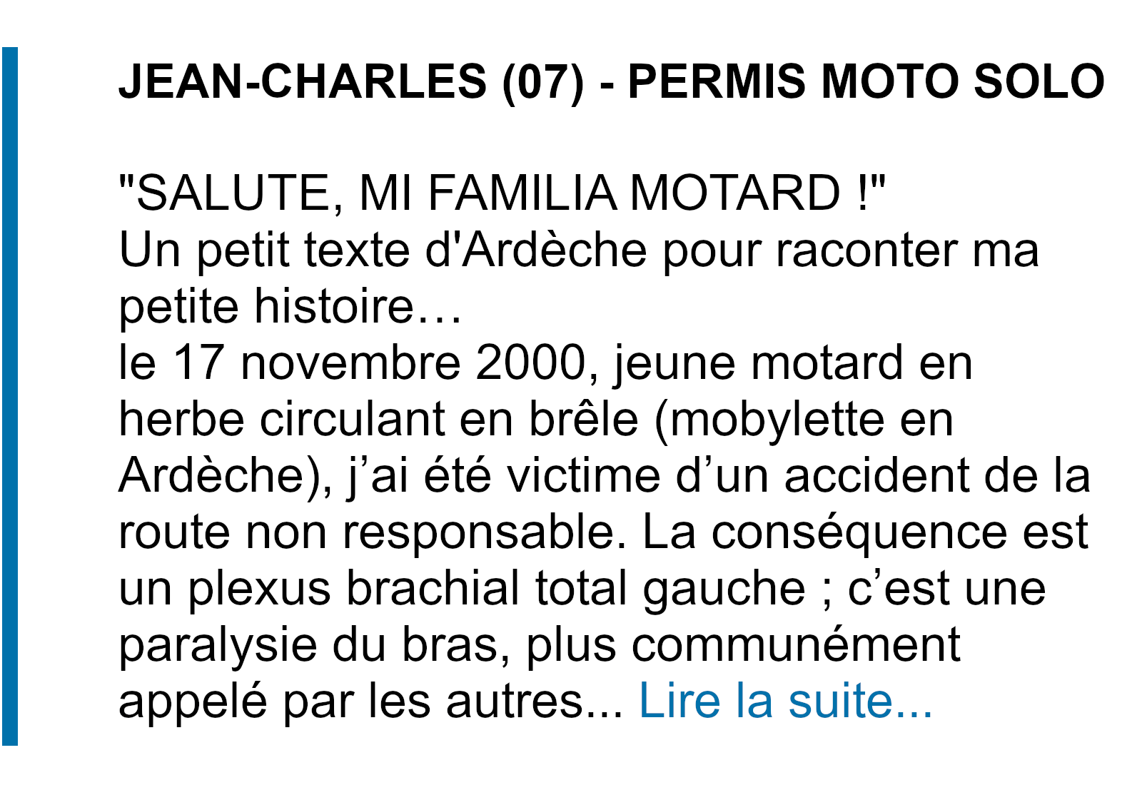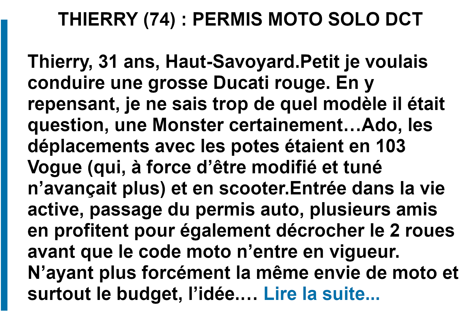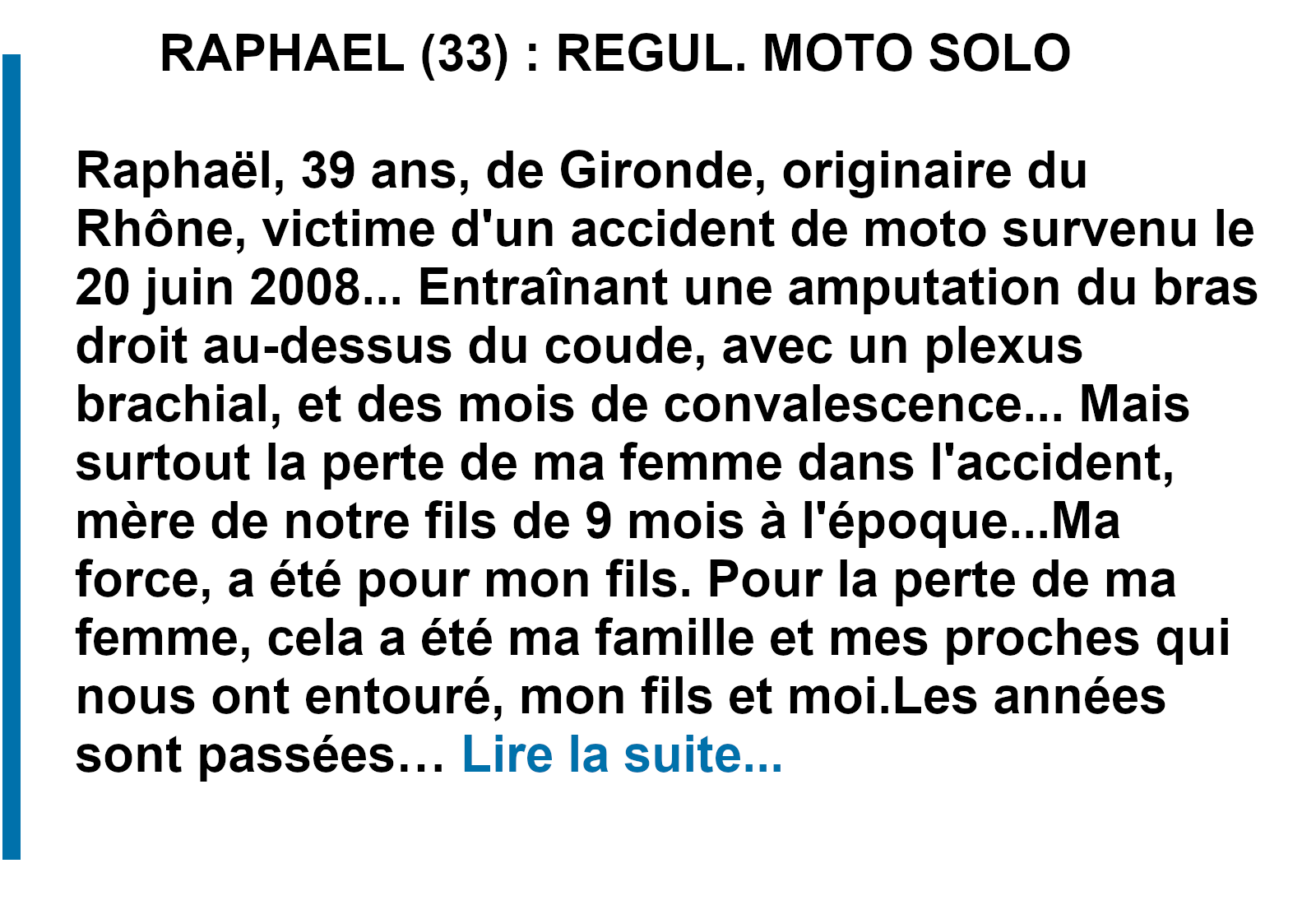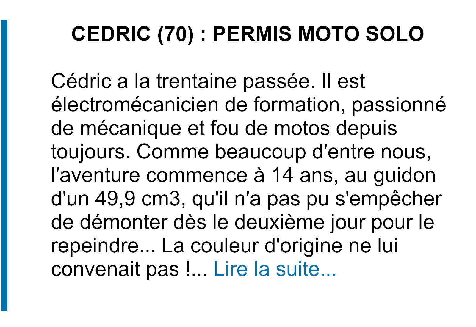 si double amputation tibiale, la moto devra être équipée avec les aménagements jambes droite et gauche (Code restriction permis : 44.03 & 10).