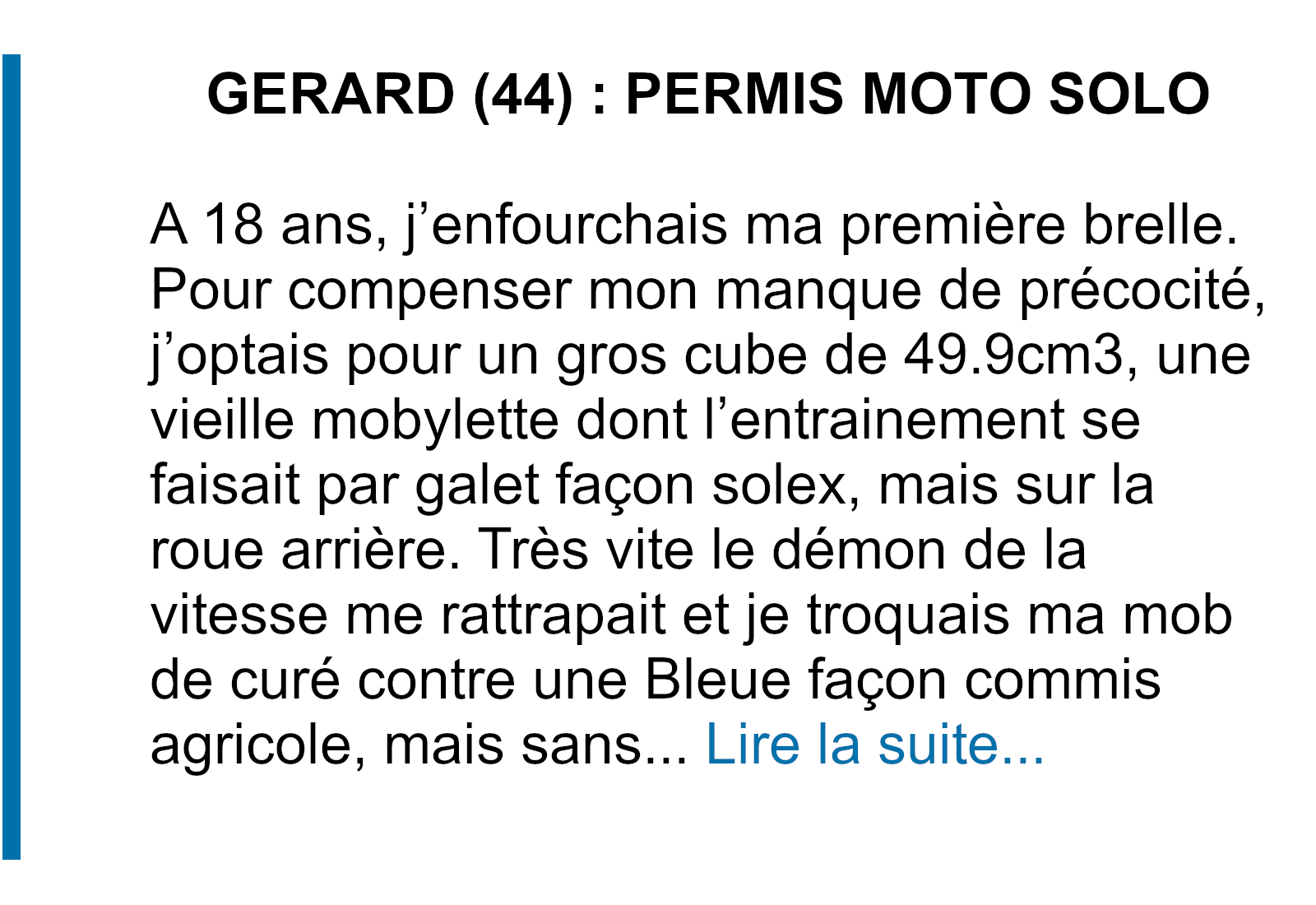 - Adjonction d'un side-car (Code restriction permis : 45)